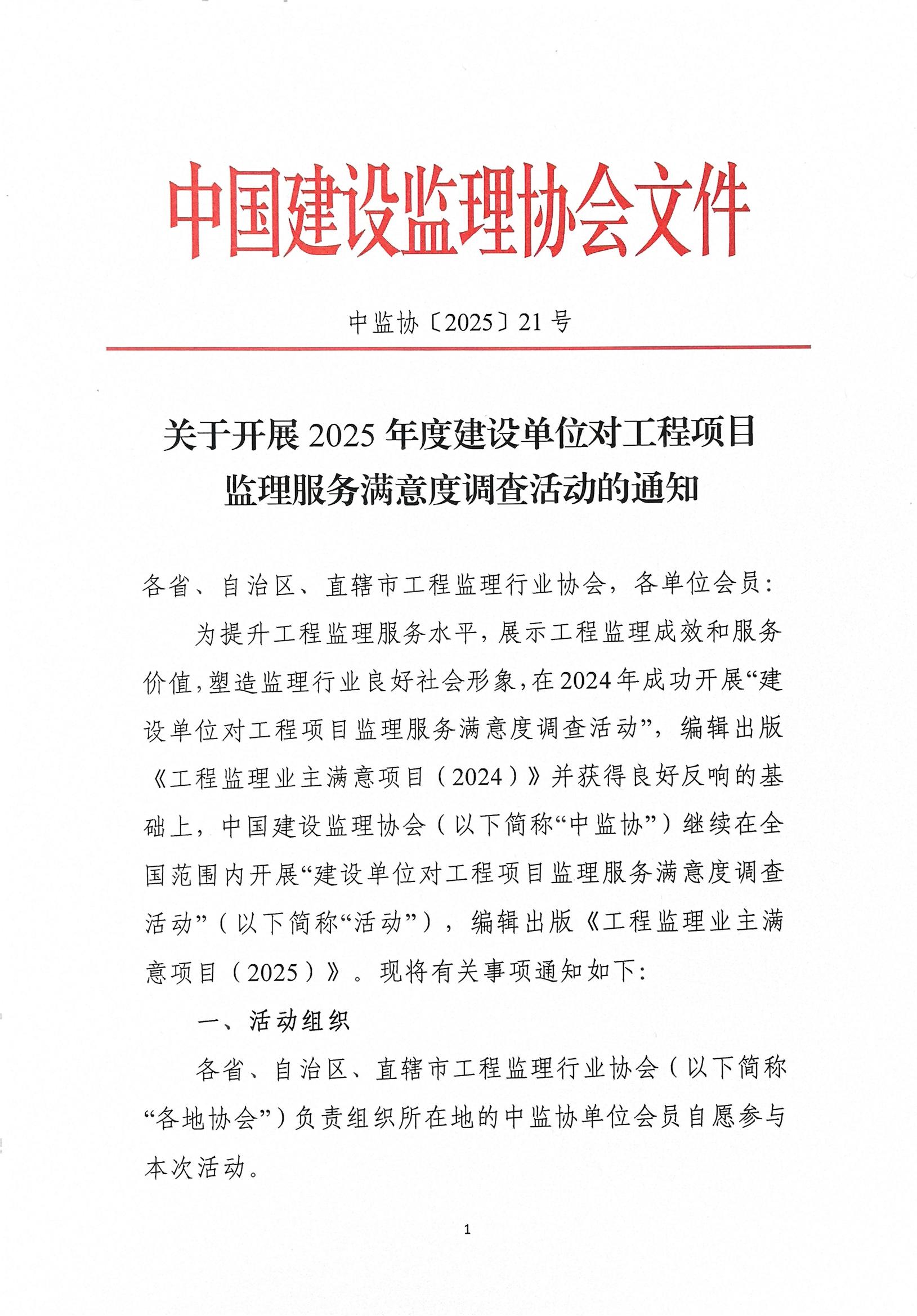 【轉(zhuǎn)】中國建設(shè)監(jiān)理協(xié)會關(guān)于開展2025年度建設(shè)單位對工程項(xiàng)目監(jiān)理服務(wù)滿意度調(diào)查活動的通知